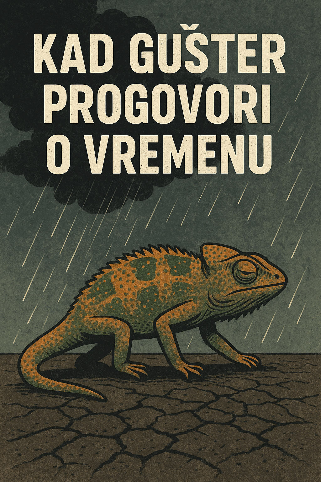 Taman se priviknem na +40, uvježbam disanje na škrge, prilagodim se kao gušter na asfaltu, kad nebo odluči da je dosta. Oblak se skoro prevrne i iz pripreme baci kantu hladne vode. Na nas. Na sve nas.