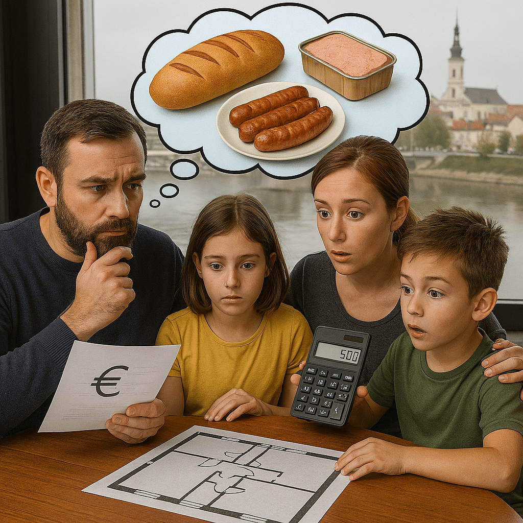 Slavonski Brod, grad gdje se kvadratni metar stana mjeri u porcijama ćevapa kod Šefkija. Mlada obitelj, puna snova i kredita, otvara Njuškalo i shvaća da je novogradnja skuplja od terapije. Cijena kvadrata? 2.130 do 2.490 eura. Stan od 60 kvadrata? 130.000 eura. To je 26.000 malih porcija ćevapa s lukom kod Šefkija( poskupio je, ali malo). Ili 43.000 kruhova. Ili 1.000 godina svako jutarnjeg jedenja paštete zajedno s omotom. Ovisno o prehrambenim preferencijama i razini očaja.