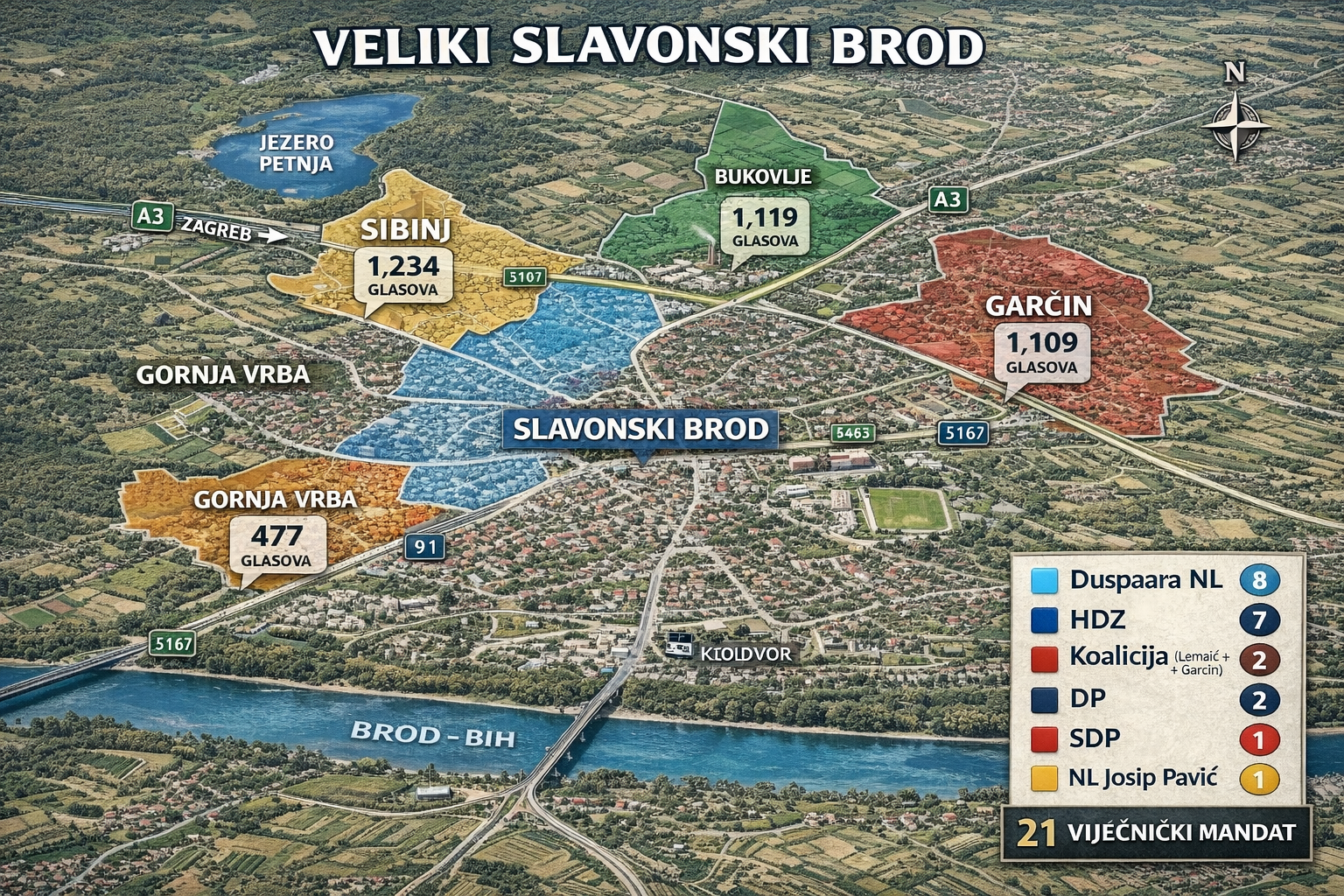 Kad bi se kojim slučajem administrativna mašta pretvorila u stvarnost i kad bi Slavonski Brod zajedno s mjesnim odborima :Gornja Vrba, Bukovlje, Sibinj i Garčin činili jedan “Veliki Slavonski Brod”, a vijeće brojalo 21 mandat kao i sadauz prag od 5,01 %, projekcija uz pažljivu provjeru svih rezultatabi izgledala ovako: