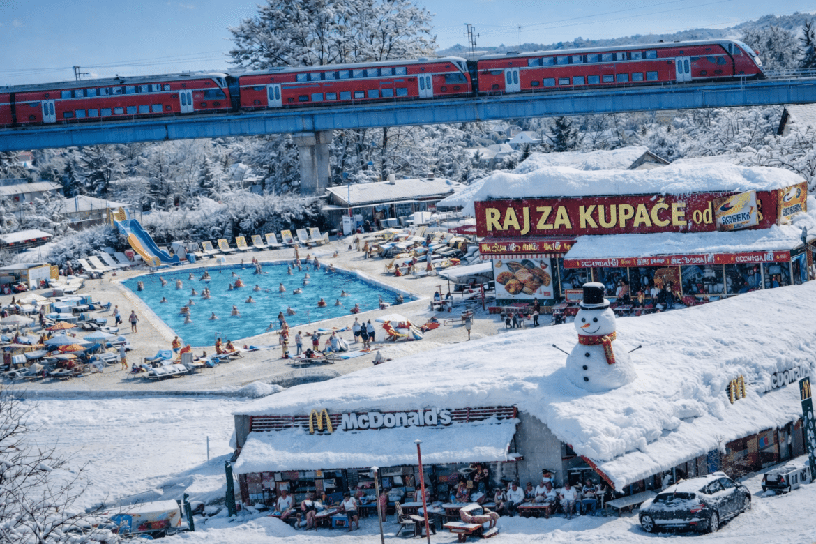 U tom kaosu, Šefki je, naravno, vidio priliku. Nakon što je otvorio uspješnu brodsku poslovnicu na vrhu Sljemena, jer gdje bi drugdje. Naime odlučio je proširiti svoje carstvo i na snježnu stranu ulice svoga grada,. Dok se McDonald’s borio s nanosima, Šefki je otvorio bazene s ćevapima. Da, bazene. Jer ako već snijeg zatrpava sve oko sebe, neka Brođani barem imaju gdje zaplivati u toploj, mirisnoj roštiljskoj idili. Međunarodna pruga, koja mu je smetala u širenju, jednostavno je podignuta u vis. Sad vlakovi prolaze iznad grada kao da smo Tokio, a ispod njih se puši roštilj. Turisti zbunjeni, Brođani oduševljeni. Definitivno se lanac Šefki vrača svojoj prepoznatljivoj crvenoj boji.