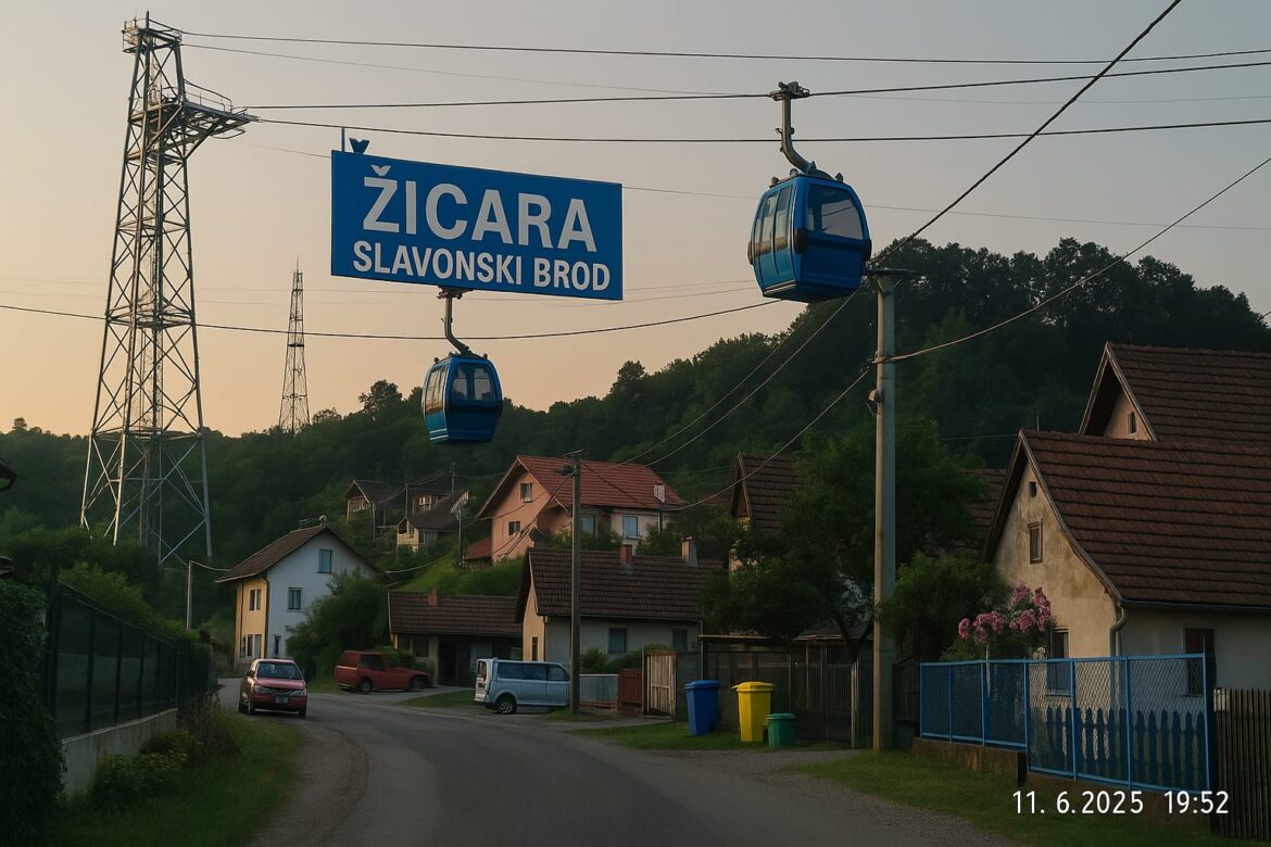 Slavonski Brod, grad gdje je sve moguće osim vode u 21. stoljeću. Dobro ste pročitali. Dok neki dijelovi grada još uvijek sanjaju o pipi iz koje nešto curi osim znoja, Brođani su dočekali žičaru. Ne šalu, ne gondolu na sajmu, ne uspinjaču za kukuruz, već pravu pravcatu žičaru. Prvu u Slavoniji. Slavoniji, zemlji ravnoj poput daske iz Slavonije drvne. I ravno u to doleti žičara.