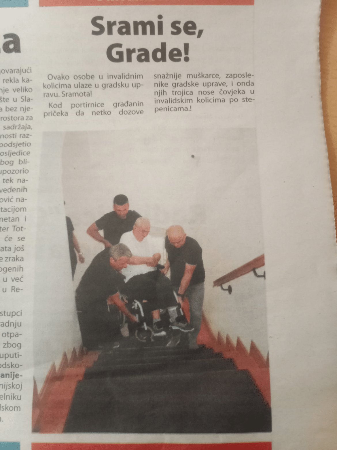 Nažalost, suočavamo se s velikim problemima u našem gradu kada je riječ o pristupačnosti za osobe s invaliditetom. Trenutno, u gradskom poglavarstvu nema lifta, što znači da naši sugrađani u invalidskim kolicima ovise o pomoći troje djelatnika koji ih nose na kat. Ovakva situacija nije samo neadekvatna već i ponižavajuća za sve uključene.