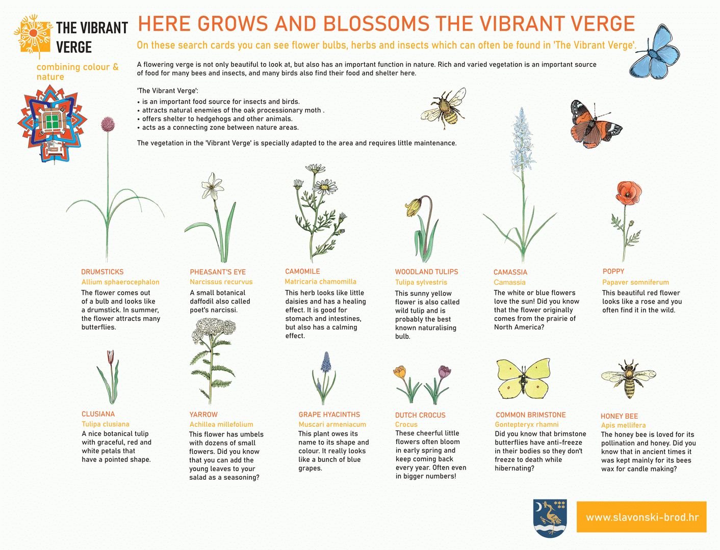 Na ovom prostoru posjetitelji će moći promatrati razvoj biljaka kroz godišnja doba, upoznati se s njihovom ulogom u ekosustavu i vidjeti kako izgleda skladan suživot biljaka, pčela i korisnih kukaca. U suradnji s lokalnim brodskim pčelarom, postavit će se manji broj košnica, što će omogućiti bolji uvid u svijet pčela te pružiti edukativnu priliku za djecu i odrasle. Osim toga, Grad Slavonski Brod planira proizvoditi i vlastiti med u manjim količinama, čime dodatno potiče održivo upravljanje prostorom i lokalnu samodostatnost.